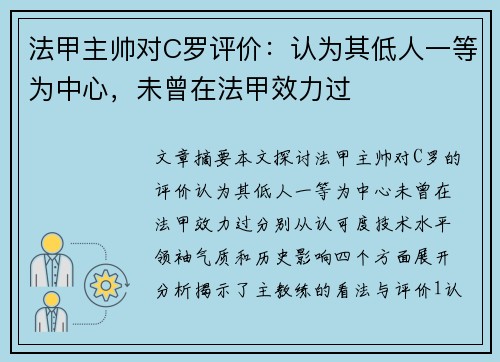 摘要:文章将以活塞主教练对艾维伤病的关心及对他无人可及的队友之赞扬为主线,分析艾维与主教练的默契配合、艾维在球场上的作用、他在团队中的领导才能以及对球队的积极影响。通过细致而深入的阐述,展现出艾维在球队中的独特价值。篮球赛季即将到来,活塞主教练着眼于球队核心球员艾维的伤病情况,毫不犹豫地称赞他是无人可比的队友。本文将从艾维与主教练的配合默契、在球场上的作用、队伍领导才能以及对球队的积极影响四个方面...